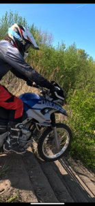 Veel kilometers woon/werk en aantal voortgezette rijopleidingen gedaan, natuurlijk hoorde daar ook de Bertt- offroadcursus bij. Tenslotte was het een adventure motor en ik wilde alles leren! “Chieltje” en ik zijn gevallen, we hebben ons weer opgepakt en gingen door. Ik wilde dit kunnen, steeds een stukje jezelf tegenkomen en je grens verleggen. Steeds een stukje hoger die berg op om dan af en toe een stukje terug ter rollen.