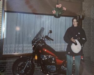 De jaren die volgden: school, autorijbewijs want dat ‘hoorde’, mijn eerste baan, thuis onze dieren en het dagelijkse leven, een ritme van werken en thuis. Nog steeds die enorme drang om motoren te spotten. Ik wist nu immers hoe dat voelde! Ooit wilde ik dat ook! Zoals bij velen werd dit naar de achtergrond geschoven, dat komt later. Ik kom uit een gezin waar niemand motorrijdt en ook in de rest van de familie zijn weinig motorliefhebbers, dus weinig begrip voor mijn idee. Maar ondertussen wist ik dat ik ooit een Harley-Davidson zou rijden.